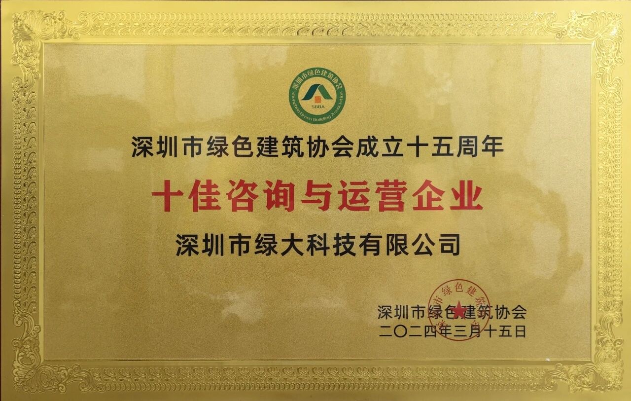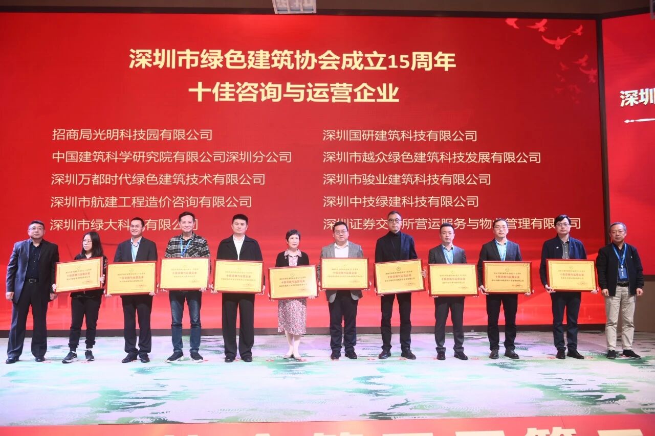 我司荣获“深圳市绿色建筑协会成立15周年 • 十佳咨询与运营企业奖”