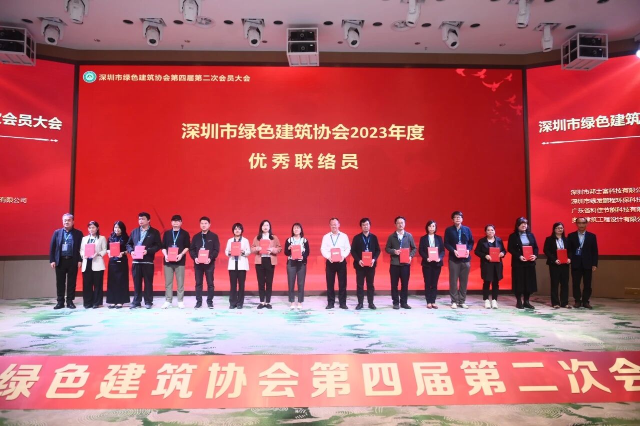 2024年3月15日,深圳市绿色建筑协会第四届第二会员大会在深圳市罗湖区银湖会议中心银禧厅召开,会议主题:绿建高质量 携手向未来。我司总裁邱少腾先生,技术部总经理裴佩女士等人参与了本次会议。